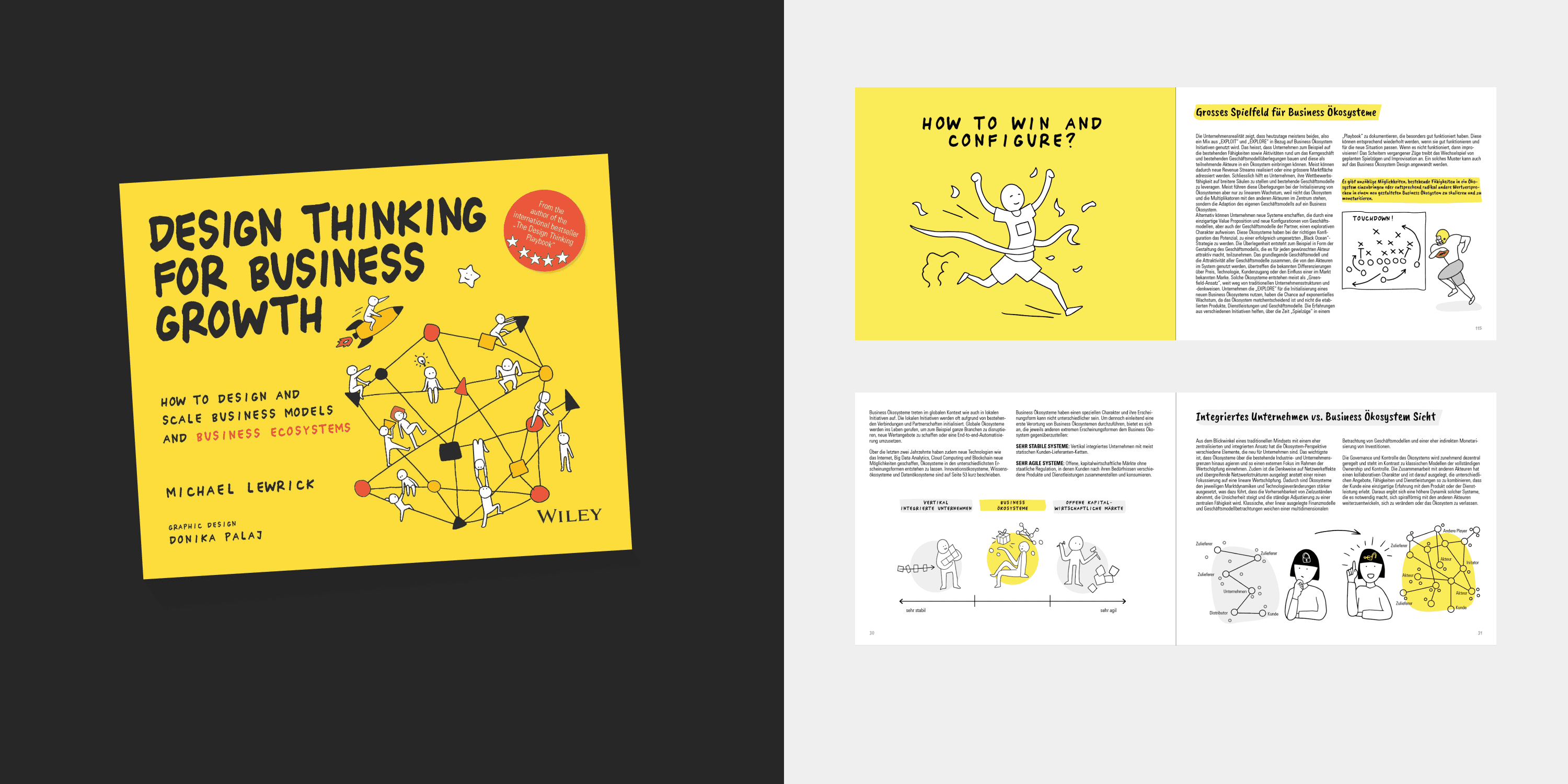 The book 'Business Ecosystem Design' by Michael Lewrick introduces iterative process models that help companies navigate and innovate within complex business ecosystems. For this project, I created all illustrations for more than 350 pages, designed the book cover, and developed the full layout for both the English and German editions. CHALLENGE As part of an established series by the author, the book required a careful balance between continuity and creativity. The task was to adapt and extend the existing visual language while bringing the new thematic context to life and ensuring that the design felt both familiar to returning readers and fresh in its content and perspective.